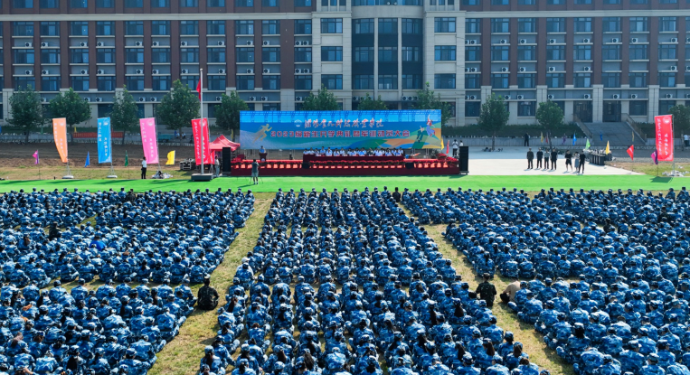 9月5日上午,潍坊食品科技职业学院2023级新生开学典礼暨军训动员大会在学院体育场举行。