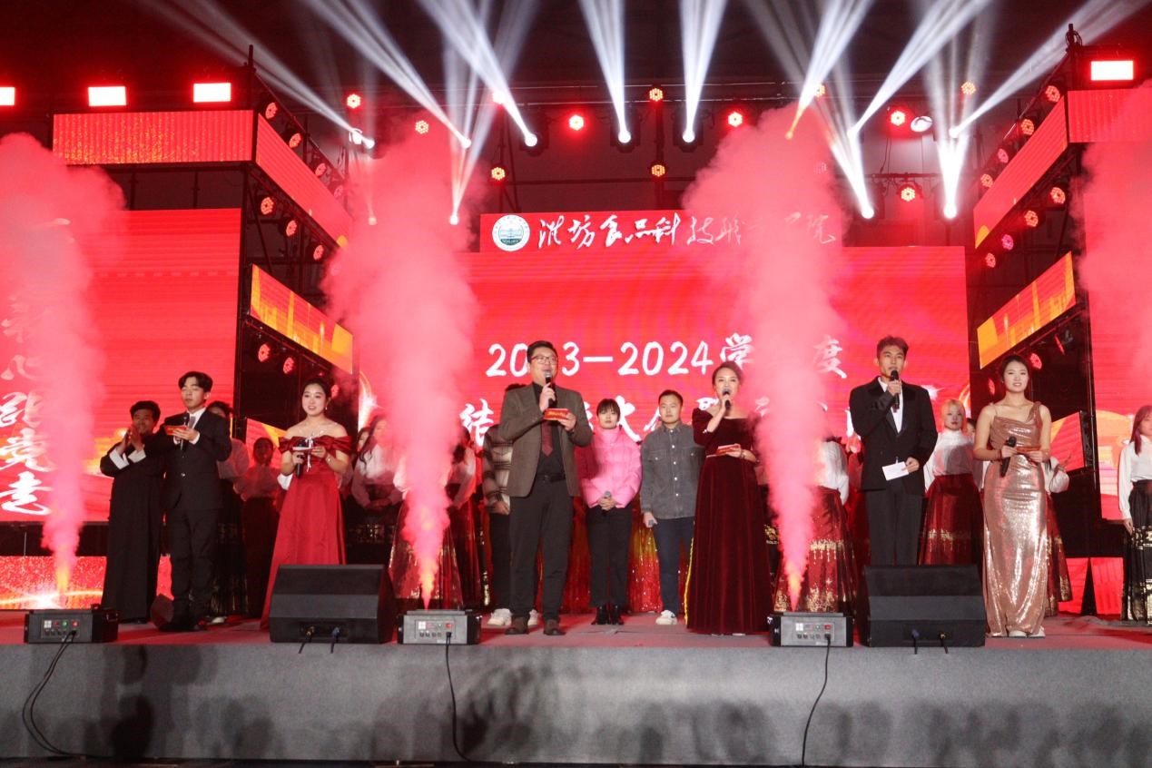 2023年12月28日晚上,潍坊食品科技职业学院2023-2024学年度总结表彰大会暨元旦晚会在学院体育馆隆重举行。